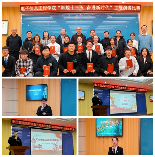 2020年12月23日,电子信息工程学院在第一学术报告厅举行“辉煌十三五,奋进新时代”主题演讲比赛决赛。学生处副处长周雅聘,校团委书记王斌、副书记李雯娟,学院领导班子、全体辅导员,以及150名学生参加本次活动。