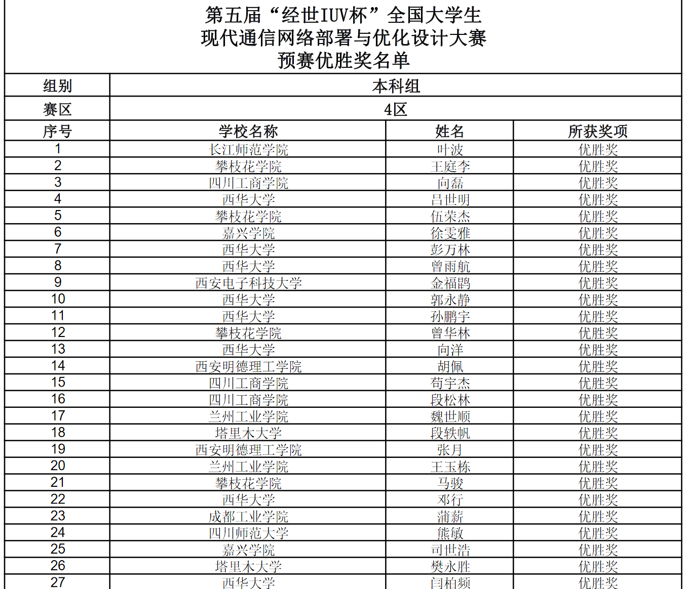 2021年11月21日,第五届“经世IUV杯”全国大学生现代通信网络部署与优化设计大赛区域预赛圆满结束,我校参赛同学与包括电子科技大学在内的10个省市区的100多所高校近千位学生同场竞技,有9位同学获得优胜奖。其中,通信19级的魏世顺和王玉栋两位同学晋级全国总决赛。