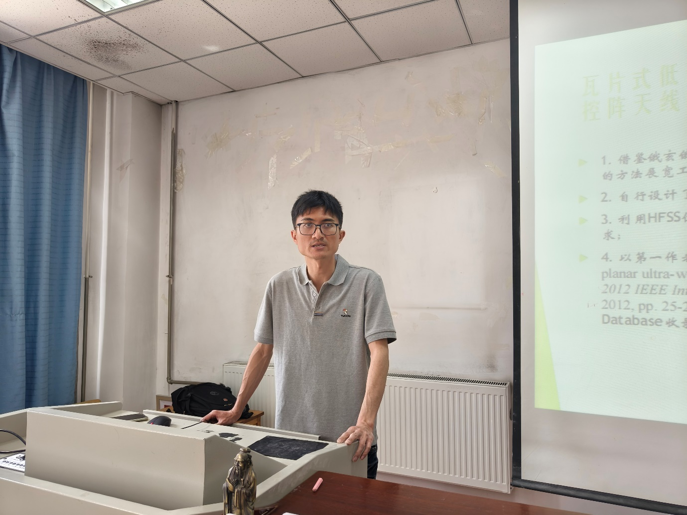 何若愚博士作题为《瓦片式低剖面平面(弧面)超宽带宽角扫描相控阵雷达射频系统的研究与开发》的学术报告。何若愚博士毕业于中国科学院大学,专业为电磁场与微波技术,研究方向为“通讯、雷达和定位系统中射频前端系统的理论创新和新技术开发”。报告围绕超宽带相控阵雷达射频前端系统的组成、射频前端系统的收发组件(Transmiting and Receiving Module: TRx)和超宽带宽角扫描天线阵列(Tightly Coupled Dipole Array: TCDAs),结合电子信息产业发展,关键芯片产业的发展及现状以及相关领域的发展前景作了全面、生动的讲述。