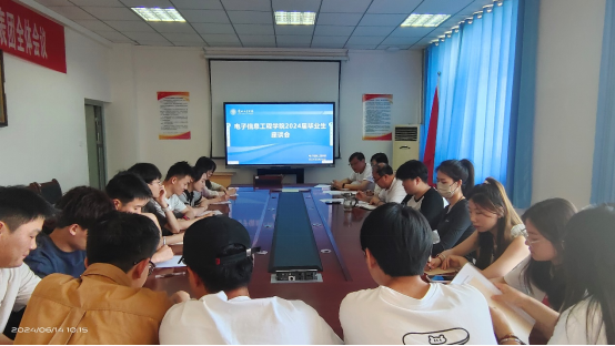 6月14日上午,电子信息工程学院在学院会议室召开2024届毕业生座谈会,学院党委书记辛欢、院长周征、副院长李伟和部分教师参加座谈会。