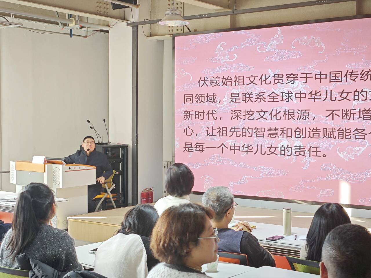 为传承和弘扬优秀传统文化,12月20日,由科学技术处、党委统战部、电子信息工程学院、艺术设计学院主办的学术大讲堂活动顺利开讲。讲座特邀天水民俗博物馆馆长、天水市博物馆文物保管部主任刘复兴,为师生作题为《追逐梦想 勇于开拓——让人祖伏羲的智慧和创造永励后人》的专题讲座。