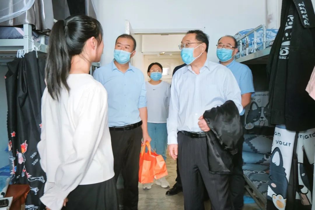 在慰问学生们的过程中,各位领导老师亲切地与大家进行着交流,并对同学们的到来表示欢迎,在此期间还询问同学们近期的生活和学习情况,特别是对新生来到学校后的感受以及对学校住宿、饮食方面的适应情况,叮嘱同学们在疫情防控期间,要严格遵守学校相关疫情防控管理规定,加强个人防护和公共卫生,及时向家人报平安,让父母放心。同学们都十分热情,现场也被开心的笑声淹没,大家共同沉浸在幸福、热情的氛围中。
