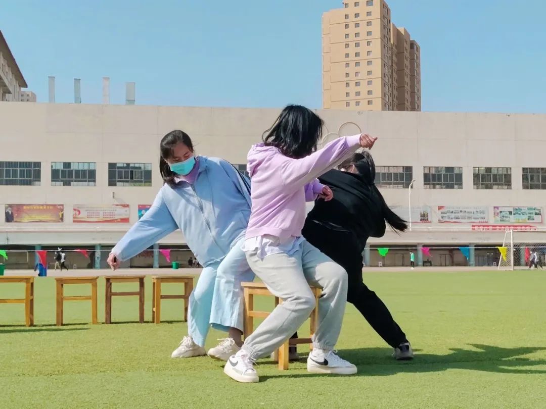 活动共有“蒙眼敲锣”、“传递比划猜”、“抢凳子”和“一块和五毛”四个游戏。活动中,同学们默契配合,全身心投入到了游戏当中。操场上不再是一片寂静,同学们的欢笑声与嬉闹声缭绕在上空,久久不能平息。活动中途还有由文艺部的同学带来的精彩表演,获得了在场同学的阵阵喝彩。在这万物复苏,生机盎然的春天里,同学们蓬勃的青春朝气与和煦春日一起,吹散了疫情的雾霾,形成了一幅最完美的画卷。