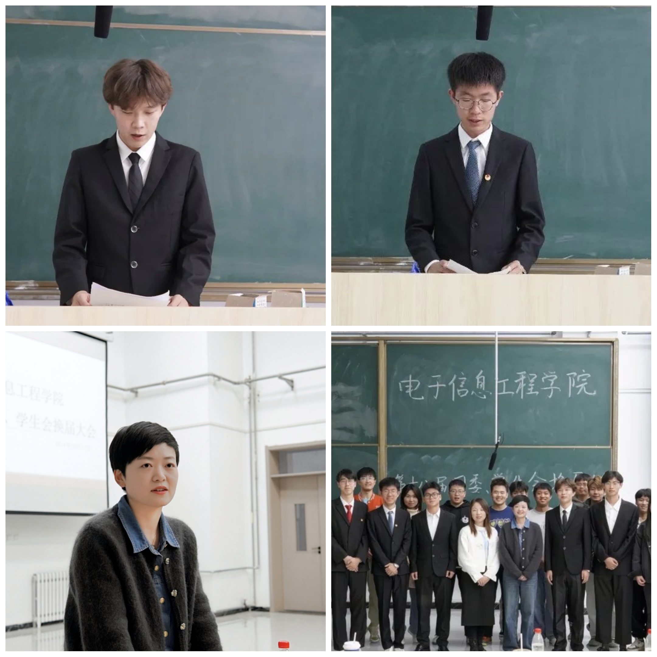2024年10月17日18时20分,电子信息工程学院于公共教学楼E103成功举办了第十八届团委、学生会换届大会。电子信息工程学院学工办主任罗雯雯老师、团委书记车敏敏老师出席会议,团委、学生会全体成员参加,会议由通信22-2班吴金龙同学主持。