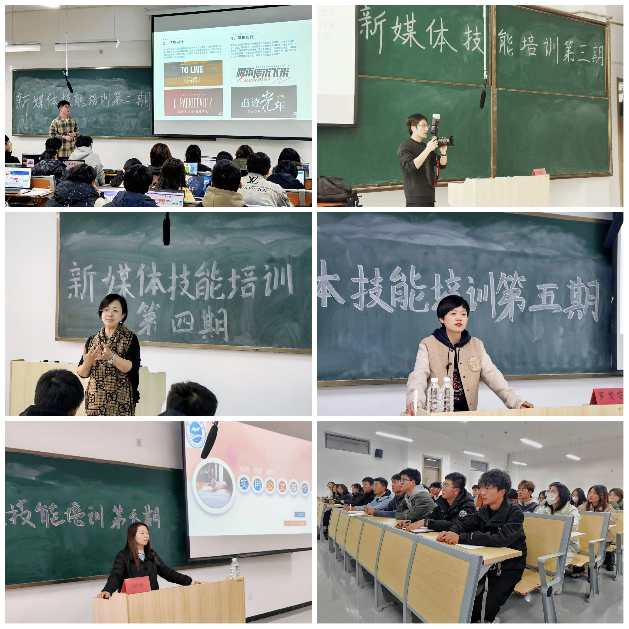 本次培训为期两周,以专题讲授为核心,分享互动为辅的方式进行。此次培训内容丰富多样,涵盖摄影、视频剪辑、海报设计、活动策划、新闻稿及公文写作等多个方面。培训过程中,教师们结合自身经验与实例分享进行讲授,并耐心解答同学们的疑问,助力他们掌握新媒体技能。同学们积极参与,展现出极高的学习热情和丰富的创造力。