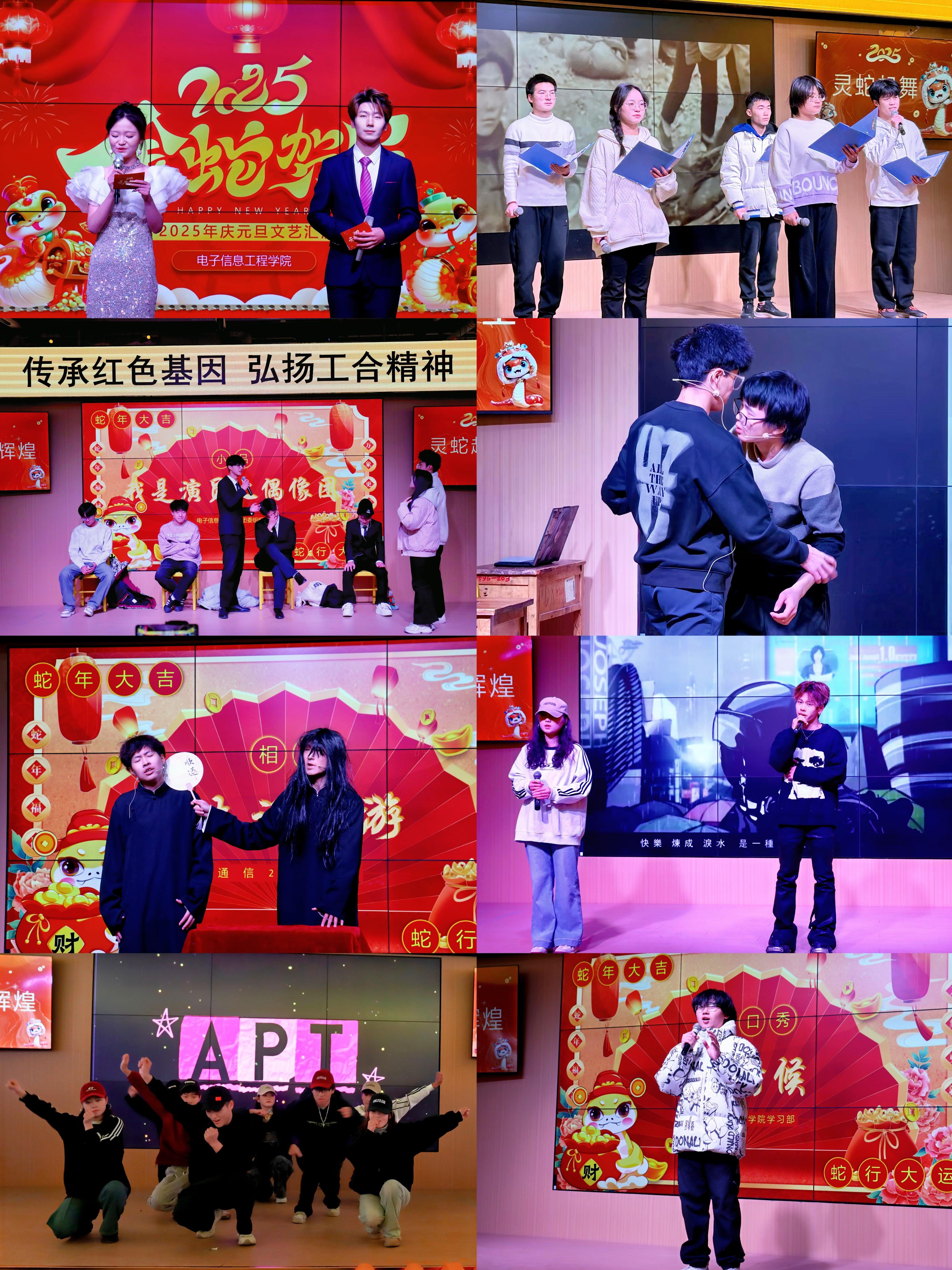岁序更替,华章日新。在元旦佳节来临之际,为丰富校园文化生活,增强学生的凝聚力和向心力,电子信息工程学院于12月26日晚上19点在兰州工业学院美食广场B区一楼举办“灵蛇起舞、共赴辉煌”元旦晚会。