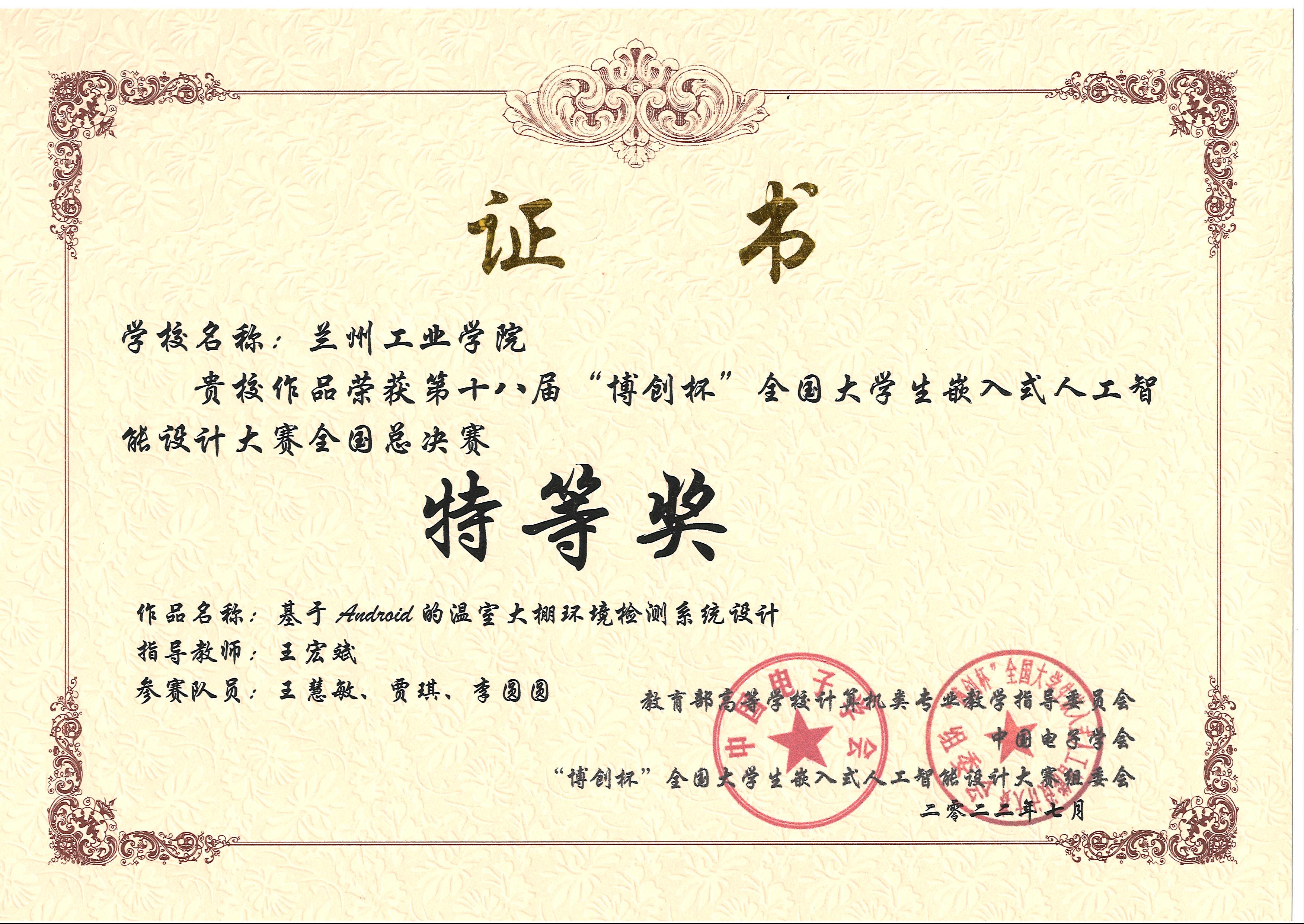 近日,第十八届“博创杯”全国大学生嵌入式人工智能设计大赛全国总决赛已闭幕。我院参赛队伍喜获国家特等奖1项(参赛学生:王慧敏、贾琪、李圆圆,指导教师:王宏斌),国家一等奖2项,国家二等奖4项,国家三等奖1项。这是我校参加此项赛事以来取得的新的突破,我校已连续三年斩获此项赛事特等奖。