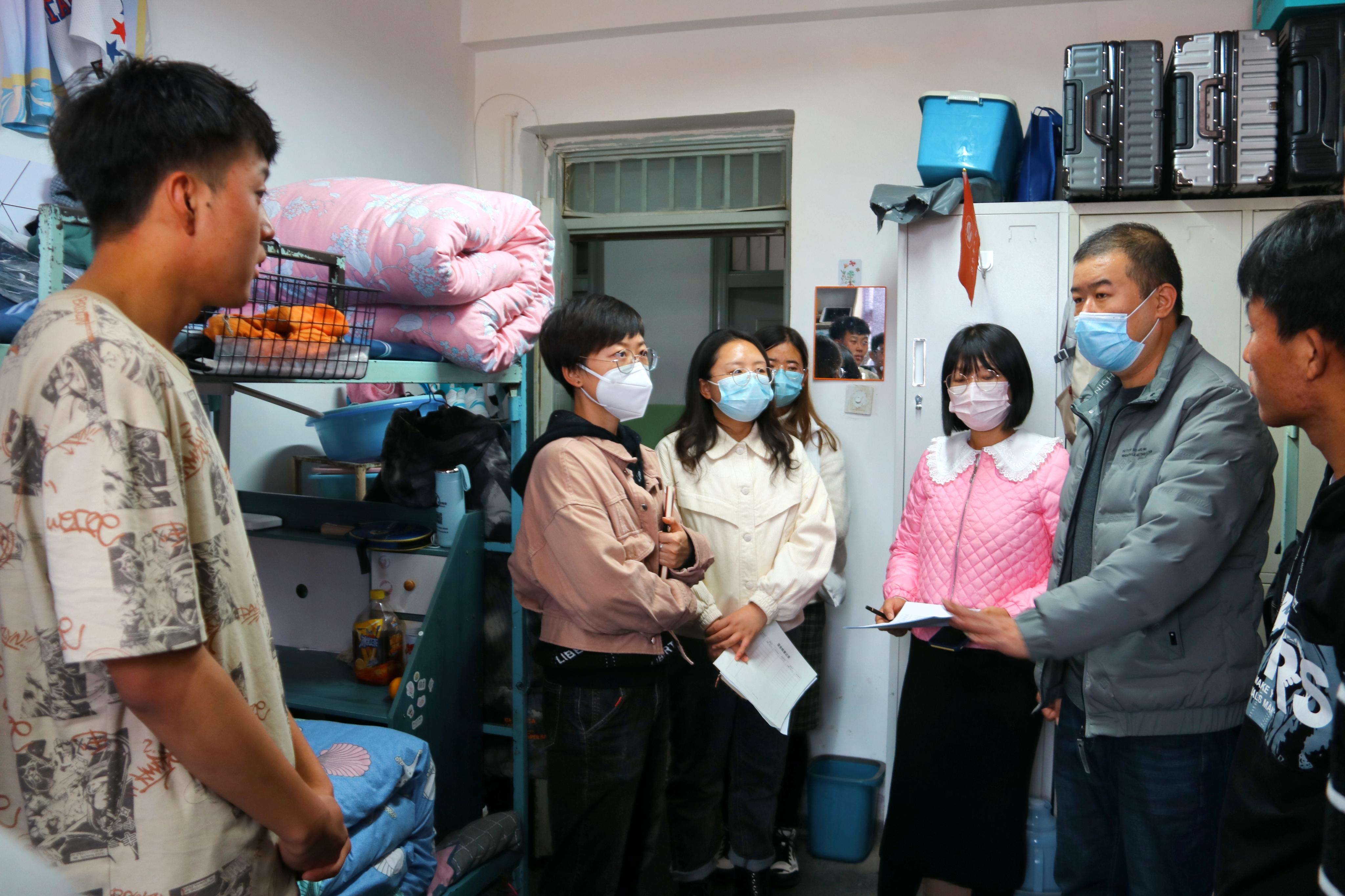 王礼一行在宿舍细心询问同学们目前的生活情况和线上学习的情况,特别叮嘱大家特殊时期要做好个人防护,保持宿舍良好的通风,同时要规律作息、合理饮食、劳逸结合,遇到困难及时向班主任、辅导员及学院寻求帮助。鼓励大家保持乐观的心态,在积极配合学校各项防疫工作的同时,保持良好的学习状态。同学们也热情回应,纷纷表示一定会积极配合学校各项防疫工作,做好自身防护。