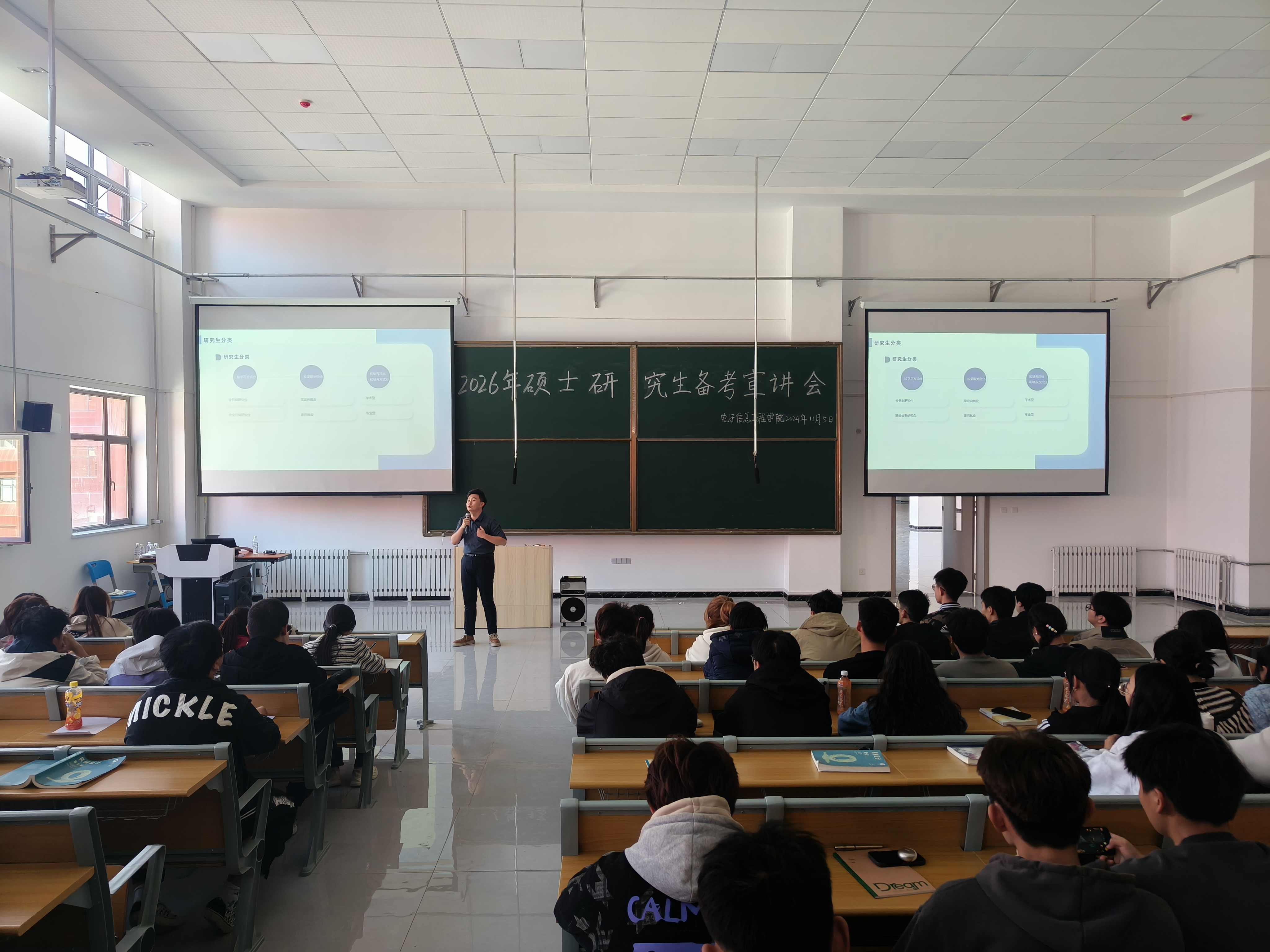 为进一步加强优良学风建设,充分调动学生考研的积极性,帮助学生了解考研形势、明确考研目标、增强考研信心。11月5日-11月14日期间,学院在公共教学楼B107召开2026届毕业生考研备考系列指导讲座。本次活动邀请万硕考研张尧、海天考研何建文担任主讲,学院2026届百余名毕业生参加。