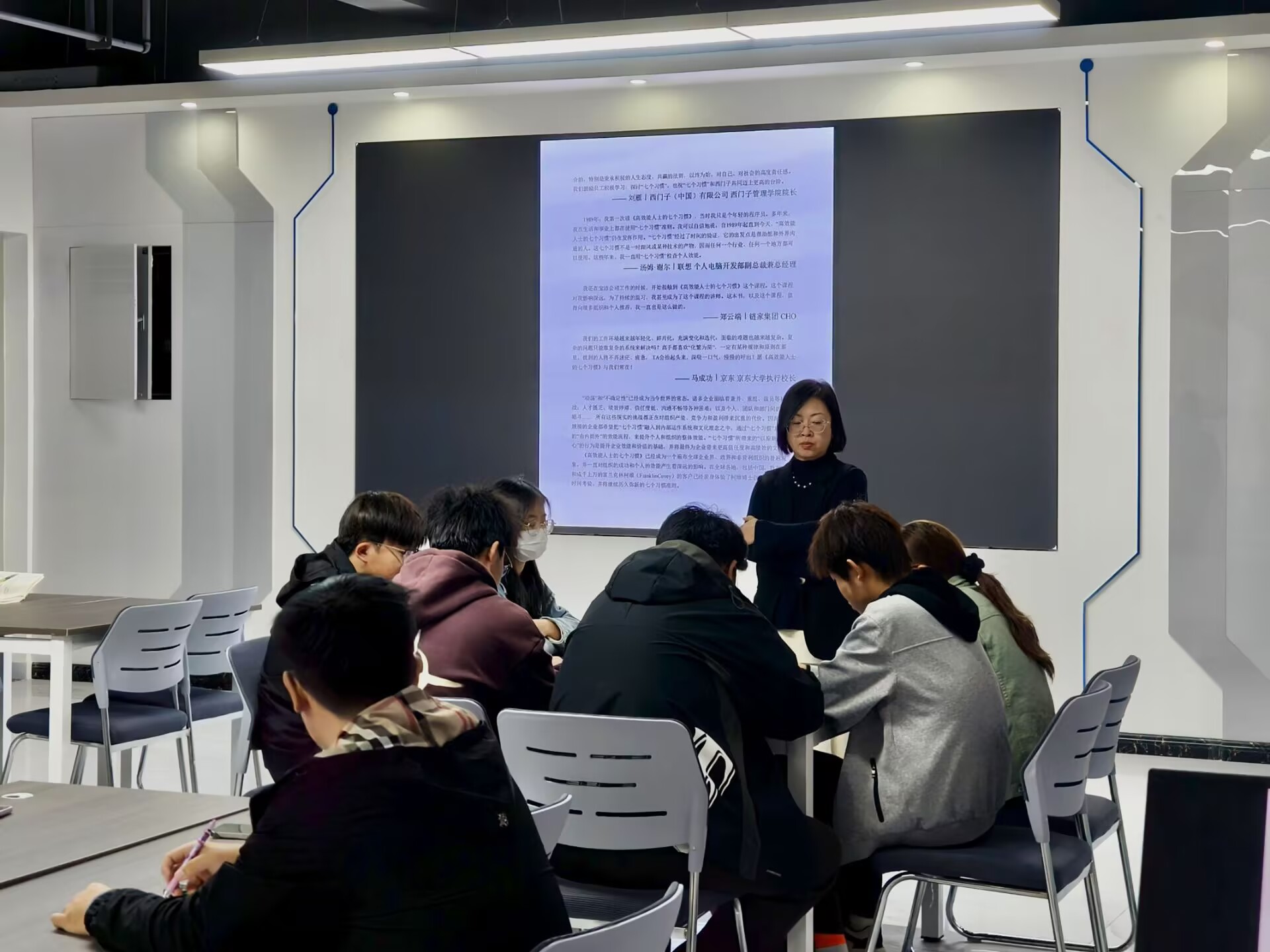 活动中,辛欢书记以高效能人士七个习惯中的“要事第一”为切入点,向同学们深入浅出地讲解了任务优先级划分、时间规划等实用方法,帮助同学们掌握高效完成任务的要领,为同学们合理安排日常学习生活时间提供了有益指导。同时,同学们结合自身经历,分享了对如何划分事务优先级、做好时间规划的思考。辛欢书记认真聆听了每一位同学的分享,并针对性地提出了建议和举措,使同学们受益匪浅。