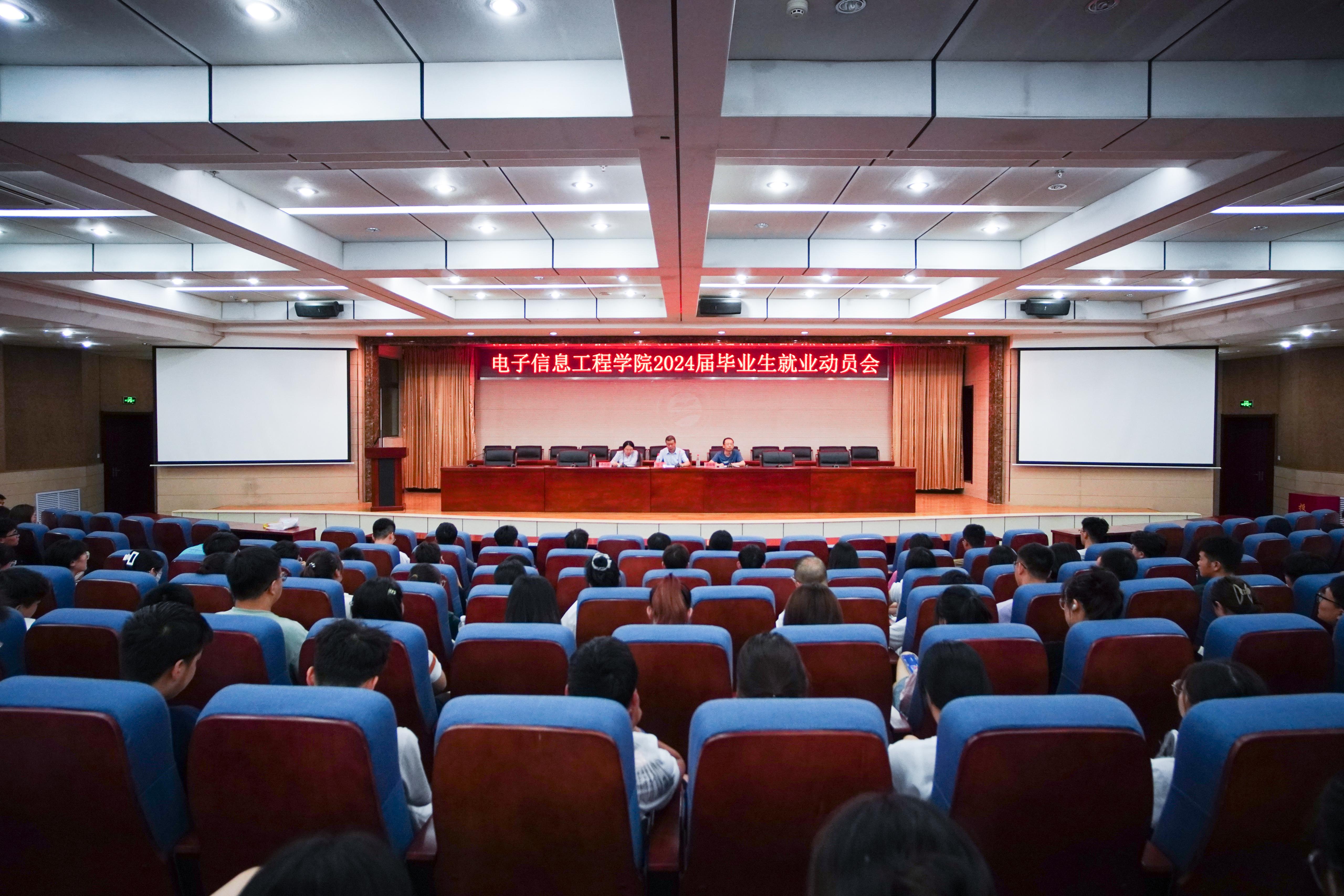 为切实做好毕业生就业指导工作,提高毕业生就业竞争力,帮助毕业生尽快稳定就业,电子信息工程学院于6月30日在图书馆第三学术报告厅举办了2024届毕业生就业动员大会, 2024届全体毕业生参加了此次动员大会。电子信息工程学院党委书记王礼,辅导员雷锡骞、李庆庆出席了此次会议。